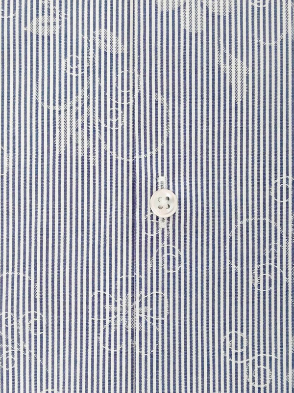 POPELINE FANTASIA RIGA BIANCO BLU 100% COTONE